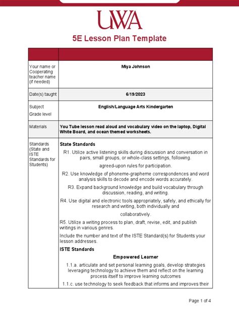 Download 5e lesson plan for kinder rtf Gutenberg